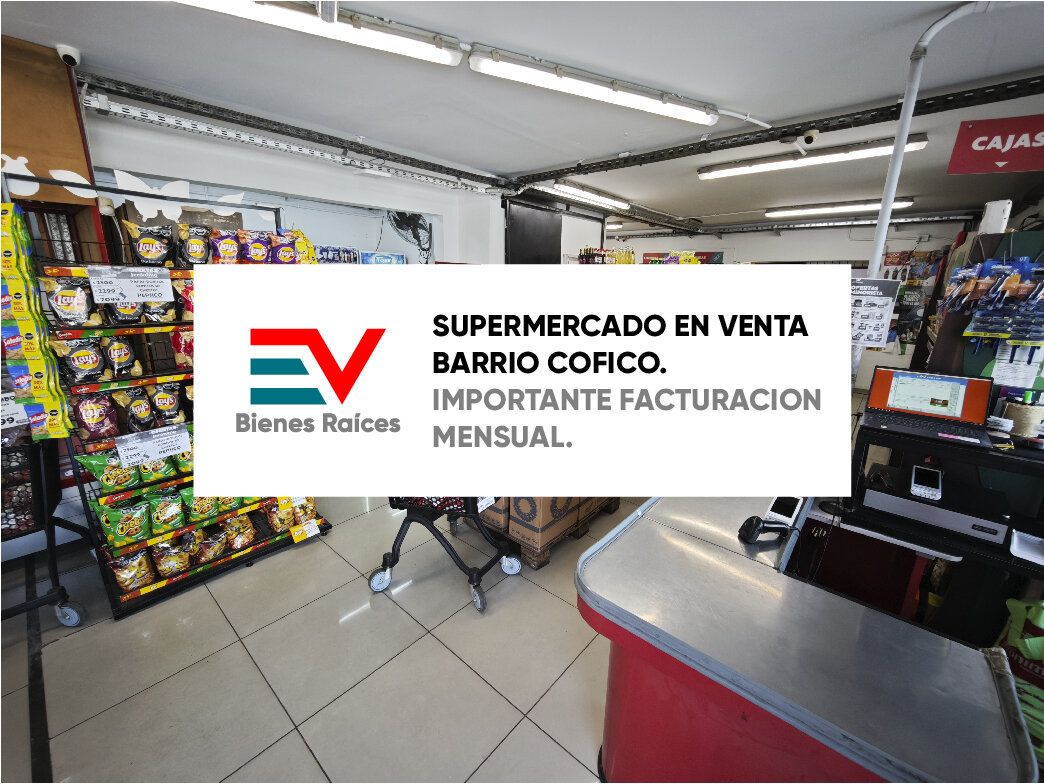 SUPERMERCADO EN VENTA EN BARRIO COFICO, MUY BUENA UBICACION Dividido en 2 Sectores (MINORISTA Y MAYORISTA) EXCELENTE FACTURACION MENSUAL Y COMPROBABLE (CONSULTAR) PARTE MINORISTA Con un total de 550 m2 que consiste en: 2 bateas de fiambre 1 heladera láctea 2 cajas completas Varias góndolas 5 heladeras verticales PARTE MAYORISTA Contiene un rack de 5 metros Heladera exhibidora con cámara para venta mayorista de fiambres y lácteos Un depósito de 550 mt2 con aproximado de 70 mt de rack para mercadería haciendo un total de 1100 mt 2 Departamento en entrepiso SE ENTREGA COMO SE VE EN LAS FOTOS (MERCADERIA APARTE) CONSULTE EV BIENES RAICES