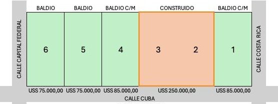 Oportunidad en Villa Allende: Inmoproyectos Bienes Raíces presenta tres lotes residenciales en zona exclusiva, rodeados de una linda arboleda y a metros del Golf de Villa Allende. La ubicación es clave: a dos metros de paradas de ómnibus y con rápido acceso a la ruta que conecta con los principales puntos de la ciudad. Cada lote ofrece vistas muy lindas y la tranquilidad de un entorno natural residencial. Son terrenos de aproximadamente 628 m², cada uno totalmente cercado y con su propio portón, listos para proyectar tu casa. Uno de los lotes incluye pileta, ideal para disfrutar al máximo del paisaje y el clima del lugar. La documentación está al día, con escritura, para una operación simple y segura. Elegí entre: - Lote 6: 628,8 m² Usd: 59800 - Lote 5: 628,8 m² Usd: 59800 - Lote 4 con pileta: 628 m² Usd: 65800 Viví cerca del golf, con verde, vistas y excelente conectividad. Consultanos para coordinar una visita y conocerlos en detalle.