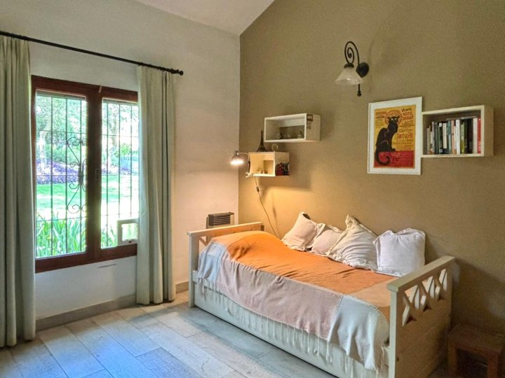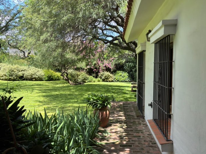 Hermosa casa estilo colonial, ubicada en una zona residencial tranquila, con rápido y cómodo acceso a Avenida Argentina. Villa Allende La propiedad se desarrolla sobre un lote amplio, con un jardín diseñado por paisajista, que realza cada espacio exterior y aporta una estética armoniosa y muy cuidada. Cuenta con galería ideal para disfrutar del aire libre, pileta y un entorno verde que invita al descanso y la vida al aire libre. En el interior, se destaca un living comedor amplio y luminoso, pensado para el disfrute y la comodidad diaria. La casa dispone de dos dormitorios con baño completo y una tercera habitación principal con baño en suite y vestidor. Además, posee sector de servicio y cochera cubierta para dos autos. Es una propiedad muy bien mantenida, con pisos recientemente renovados, lo que suma confort y valor. Una casa cálida, funcional y elegante, ideal para quienes buscan tranquilidad, espacios verdes y una excelente ubicación.