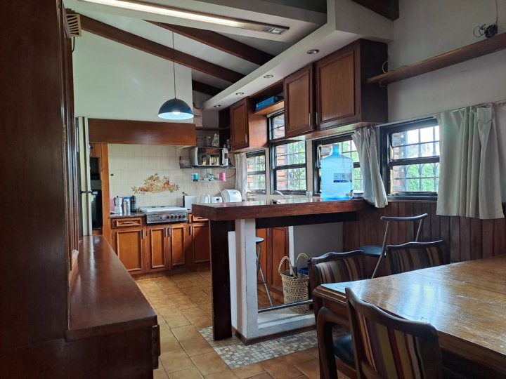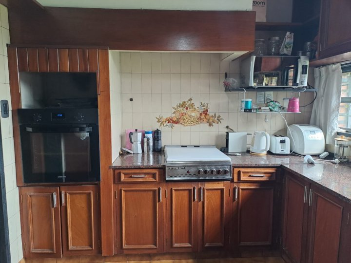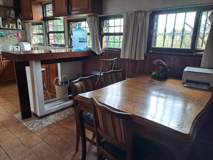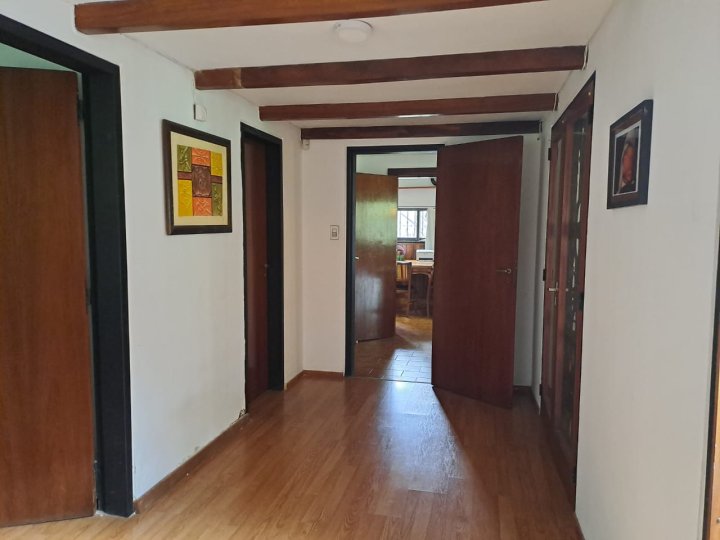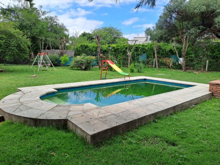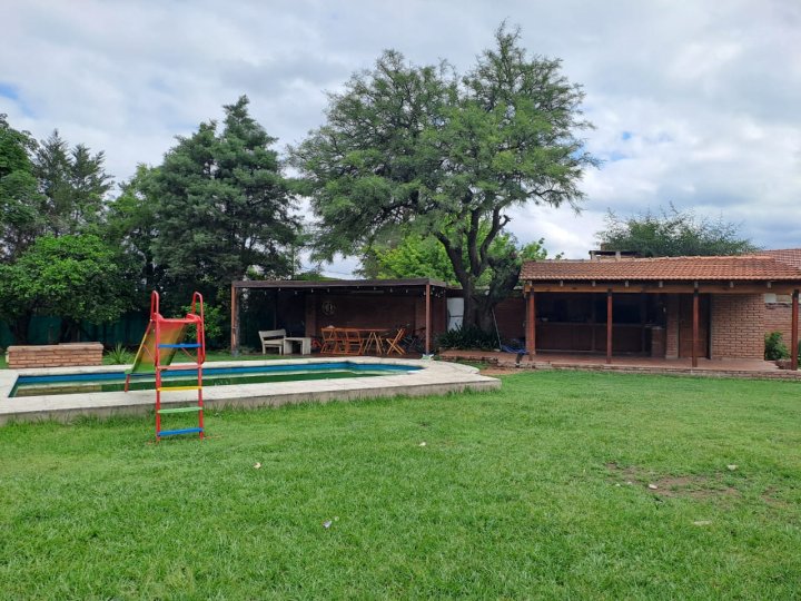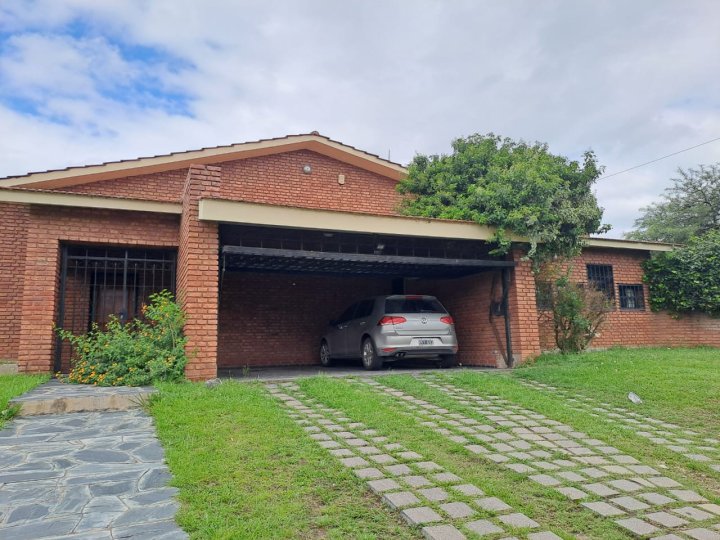 Excelente inmueble ubicado en muy buen entorno, sobre avenida, gran terreno con parque y pileta. Casa en una planta con livivng comedor amplio, cocina comedor diario con amoblamientos, altillo con escritorio y piso parquet, 3 dormitorios con parquet y el principal en suitte con vestidor, cochera cubierta en paralelo para dos vehiculos. Quincho con asador y baño. Todo en buenas condiciones. También apto housing hasta 5 duplex. Salida a dos calles. Recibo dto en centro o Nva. Cba