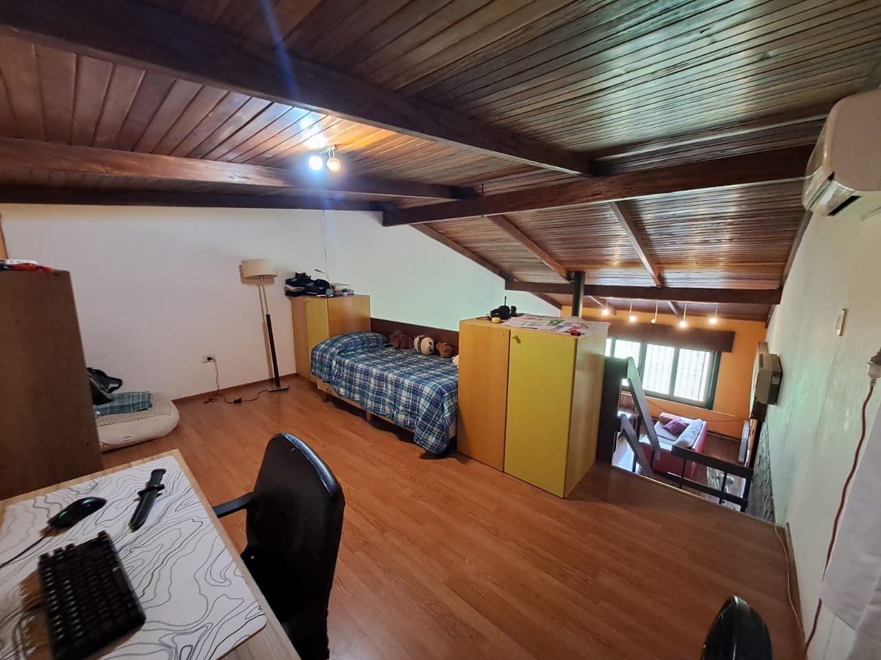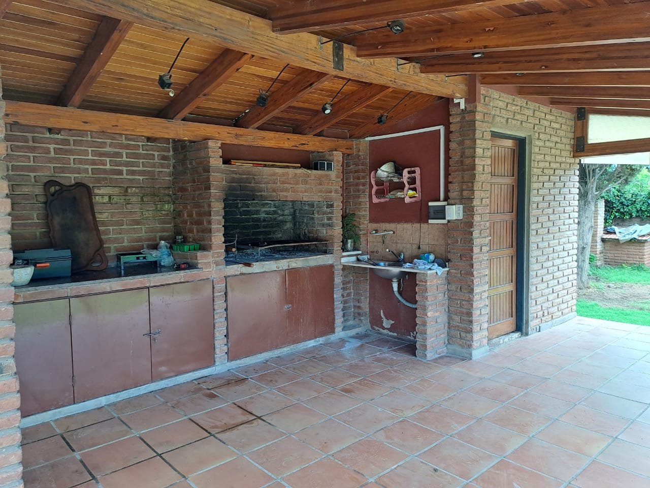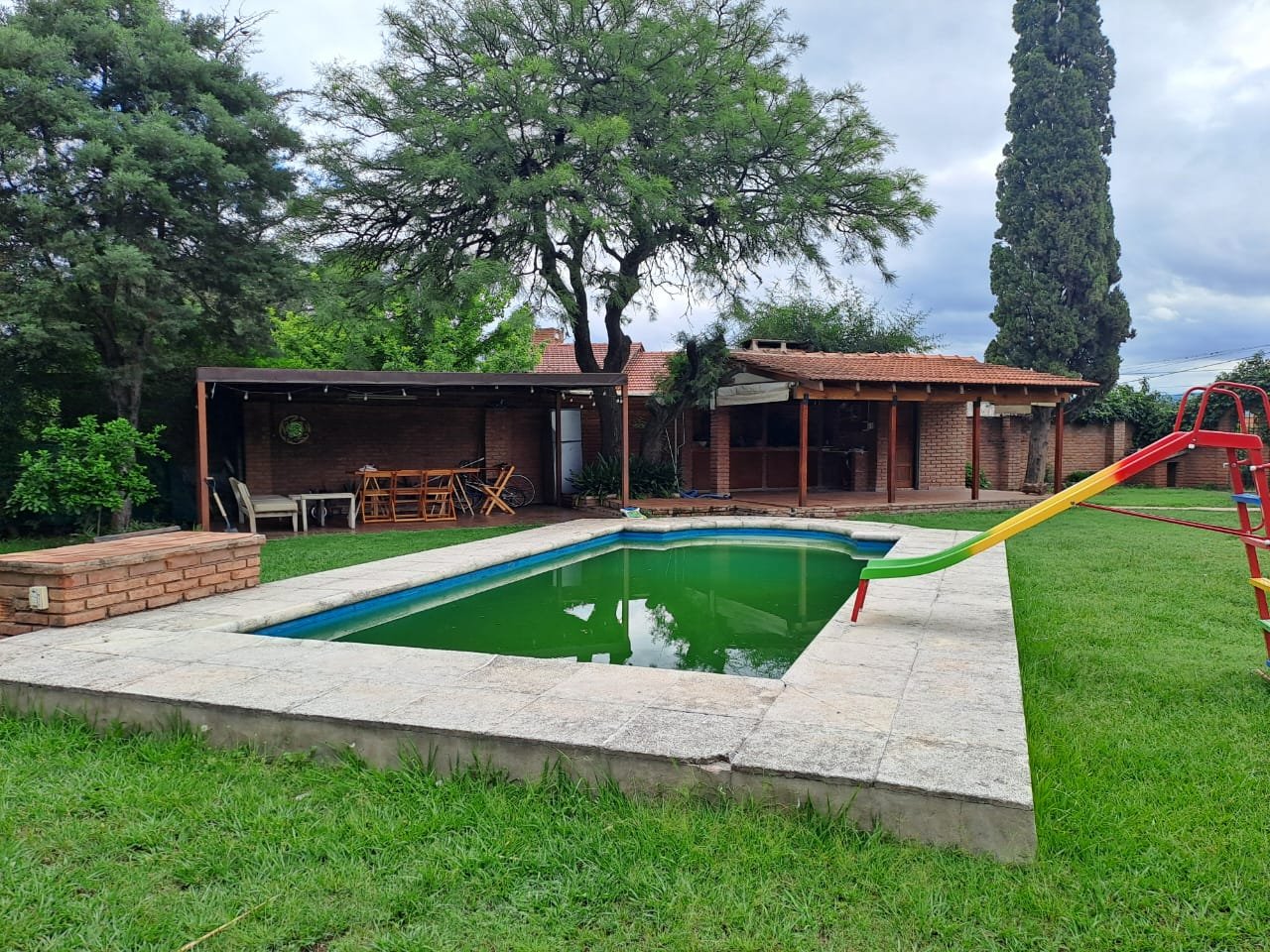 Excelente inmueble ubicado en muy buen entorno, sobre avenida, gran terreno con parque y pileta. Casa en una planta con livivng comedor amplio, cocina comedor diario con amoblamientos, altillo con escritorio y piso parquet, 3 dormitorios con parquet y el principal en suitte con vestidor, cochera cubierta en paralelo para dos vehiculos. Quincho con asador y baño. Todo en buenas condiciones. También apto housing hasta 5 duplex. Salida a dos calles. Recibo dto en centro o Nva. Cba
